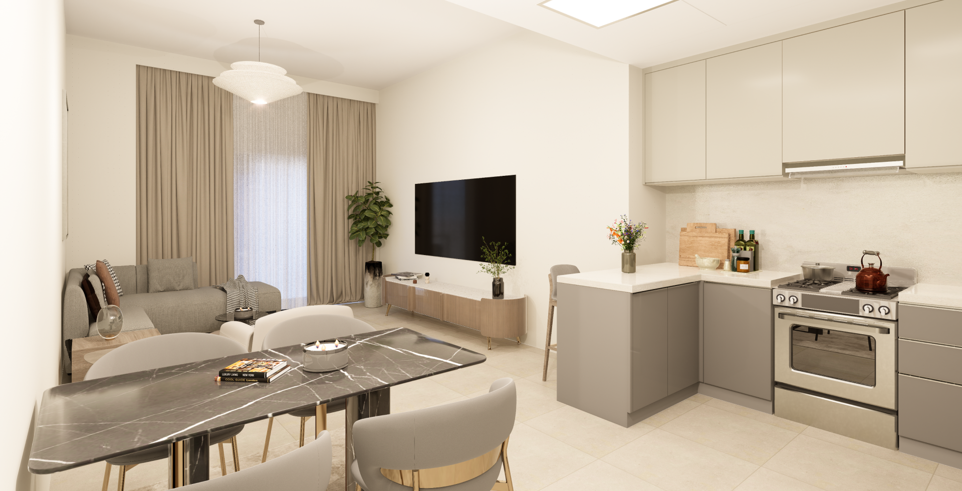 Kentia Residence, situated within a vibrant and esteemed community, epitomizes modern urban living in Ajman downtown. Enjoy unparalleled skyline views, offering a distinctive residential experience. These cozy contemporary apartments feature exquisite finishes tailored for a bespoke lifestyle.